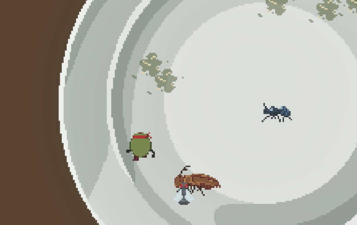 Early stage game missing a lot of polish, the settings button is just for decoration atp lol. I promise its not a bitcoin miner XD I just used Unreal which has no web support. There's 8-directional movement, dodging and twin stick shooting and stabbing with cocktail sticks. Featuring 3 different enemies that you have to survive in waves. All the art (except from the health icons) was made by me in the 10 days for the Jam and I did the programming too. Feel free to lmk any suggestions for updates if I continue development. This is my first solo published game and Game Jam entry so I would appreciate any feedback. In the future I plan to add arial fork attacks that highlight zones on the ground before stabbing but I ran out of time to do it for this Jam ;-;